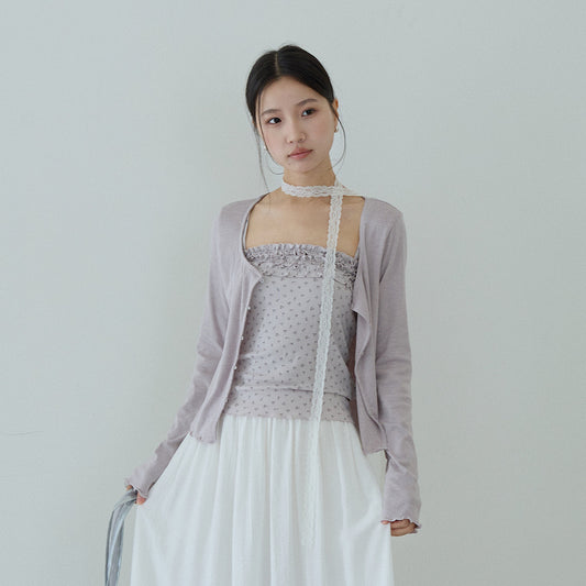 【cimz5643】韓系清新氧氣感🍃寬鬆顯瘦木耳邊V領花邊薄款針織上衣260319