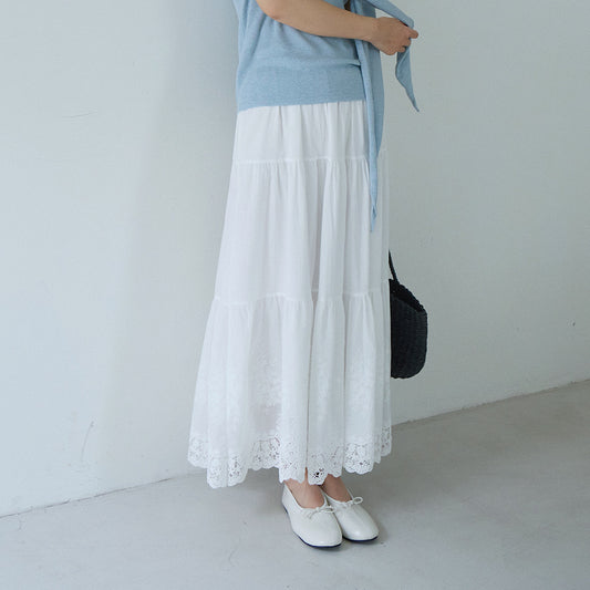 【LD11197】實拍仙女小白裙!法式鏤空蕾絲花邊拼接高腰A字裙260331