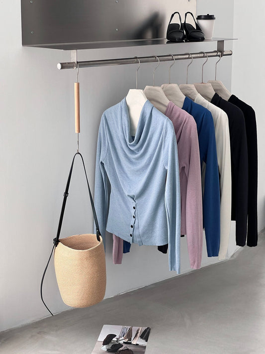 【cimzM946】氣質慵懶超顯白✨設計感垂墜領一字肩露肩顯瘦針織上衣260319