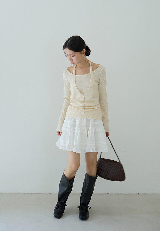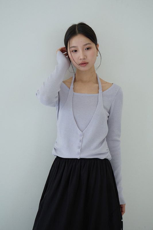 【LD11170】實拍韓系純慾微性感✨淡紫掛脖假兩件收腰顯瘦長袖針織衫260317