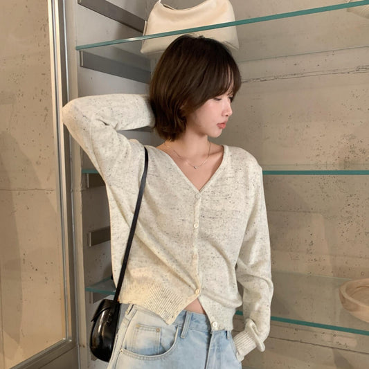 【LR01315】實拍imiss春季必備!修身顯瘦V領長袖針織罩衫260305