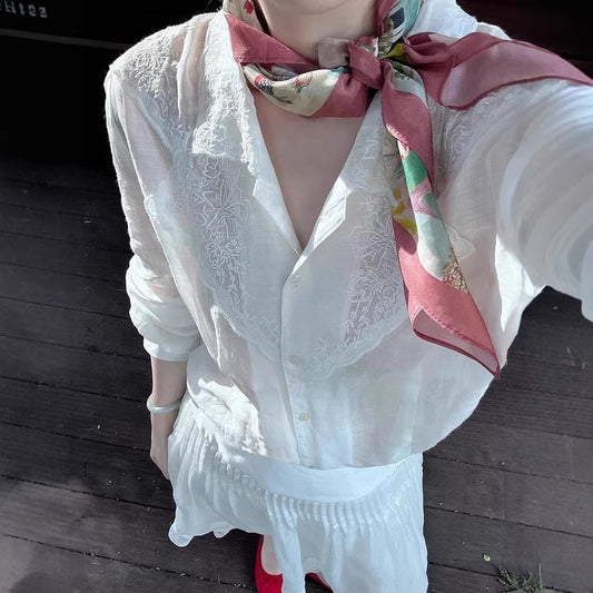 【LR90655】實拍imiss氣質百搭!法式刺繡花朵翻領長袖襯衫260305