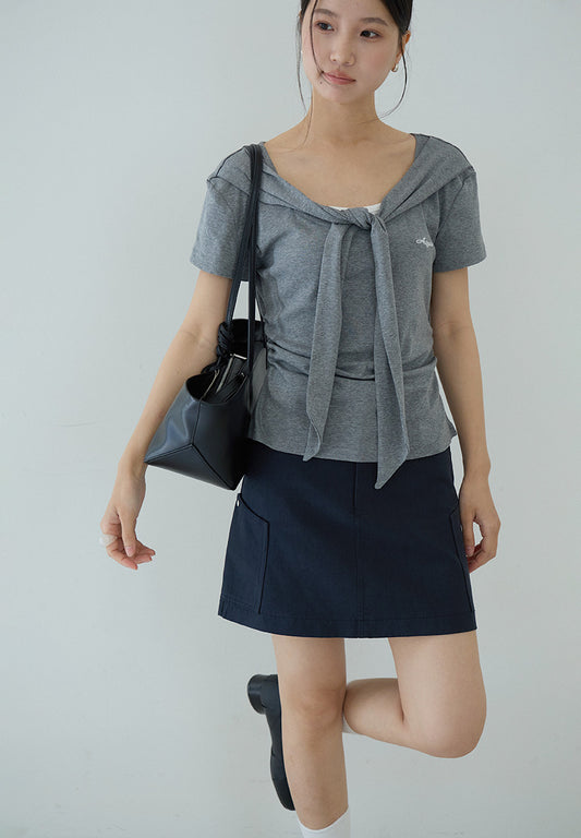 【LD11174】實拍設計感韓系絕美粉色帶披肩/綁帶假兩件短袖T恤260317