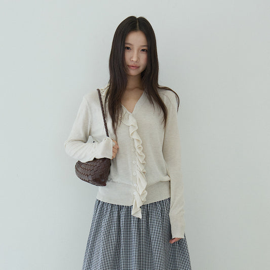 【LD11154】實拍韓系甜美減齡✨設計感荷葉薄款長袖針織衫260317