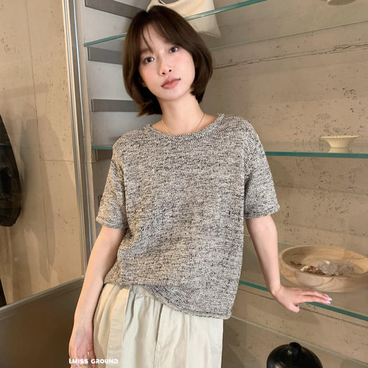 【LR991371】實拍imiss高級感氣質!高級感混雜色圓領短袖針織衫260305