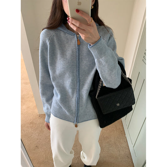 【H5537】實拍復古雙頭拉鍊連帽開衫針織外套251204