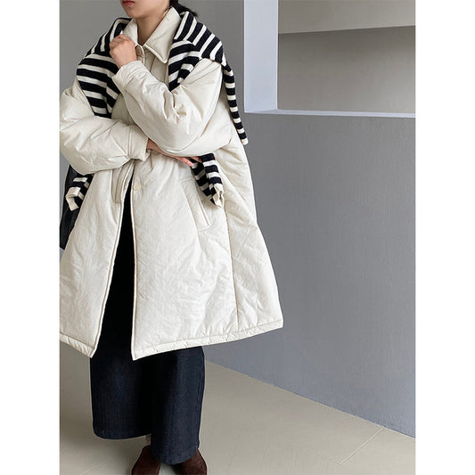 【cimz1235】 雪山奶糖 Muji 風輕薄初冬簡約廓形寬鬆棉服外套260108