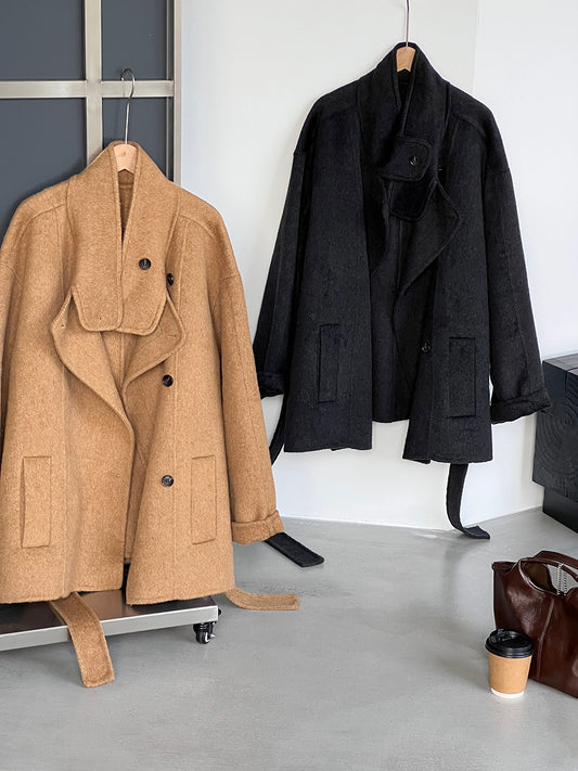 【cimz707】實拍高質感許妍韓系復古系帶氣質雙面100%羊毛大衣外套260102