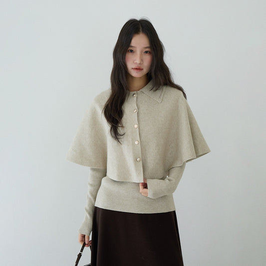 【LD11087】實拍名媛三件套 針織衫+斗篷外套+貴氣毛領251230