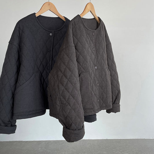 【cim3732】實拍韓系復古菱格寬鬆棉服外套251224