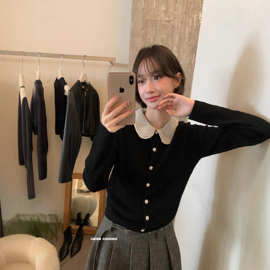 【LH01277】實拍IMISS秋冬法式絕美重工麻花珍珠領針織開襟外套(羊毛33%)251215