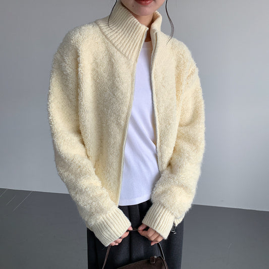 【LD11015】實拍雙頭拉鍊毛絨半高領加厚針織毛衣外套251110