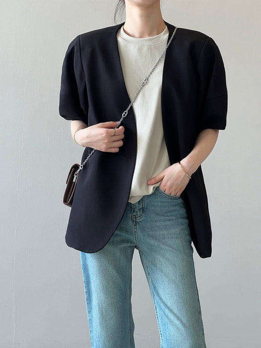 【Y80952】實拍夏春韓版薄款泡泡袖西裝外套YY25早春