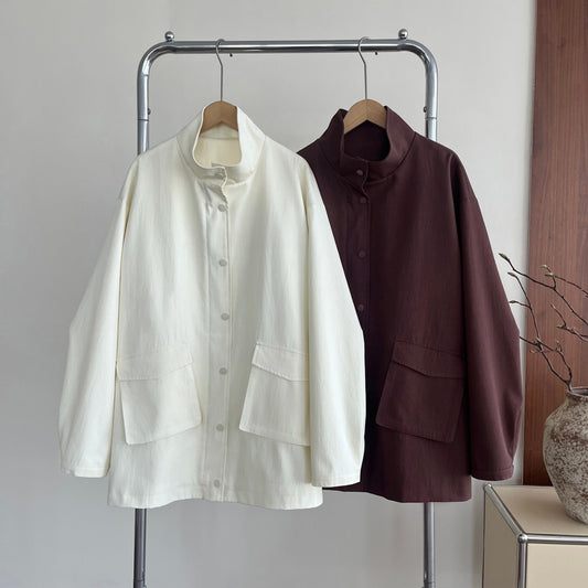 【cim2590】實拍韓國高級感極簡立領廓形立領風衣(水洗棉)cim25早春