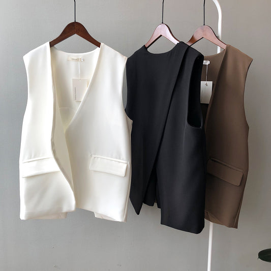 【Y80089】實拍夏春韓版V領無袖寬鬆背後開叉西裝背心YY25早春