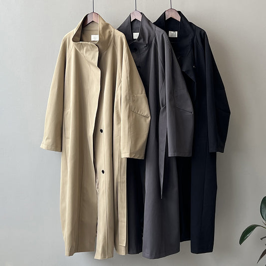 【Y82133】實拍韓國高單簡約單排扣立領長版寬鬆風衣外套YY25早春