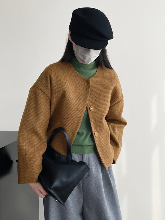 【cim2639】實拍韓國圓領羊毛呢短版內夾棉外套(羊毛40)241016