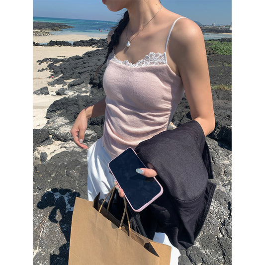 【F60240】實拍彈性蕾絲吊帶背心含胸墊250304