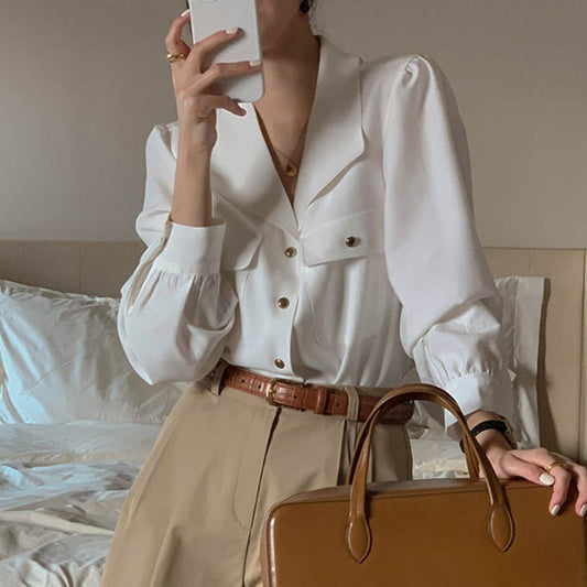 【F01215】春秋新款法式復古氣質優雅襯衫250113