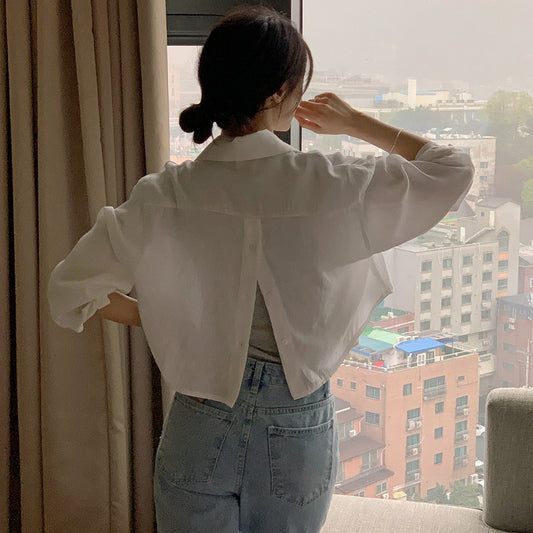【F01212】早春小眾後背開叉設計長袖短版襯衫250113