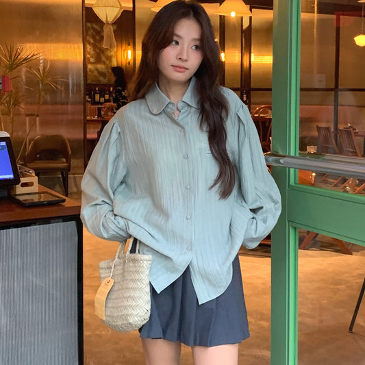 【F60116】韓國早春簡約紋理設計感襯衫250212