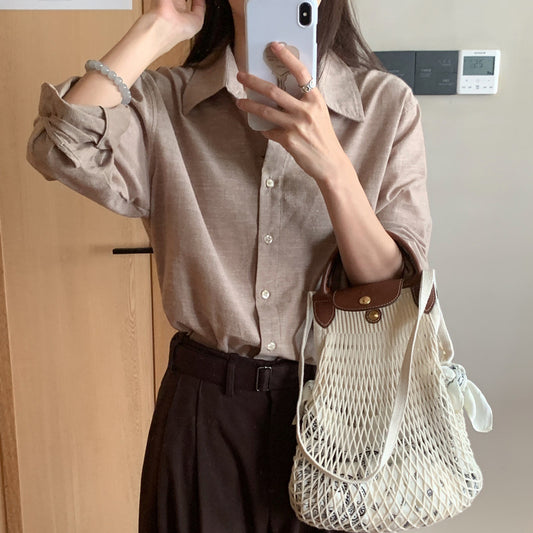 【F60110】實拍復古早春小眾紋理寬鬆長袖襯衫250212
