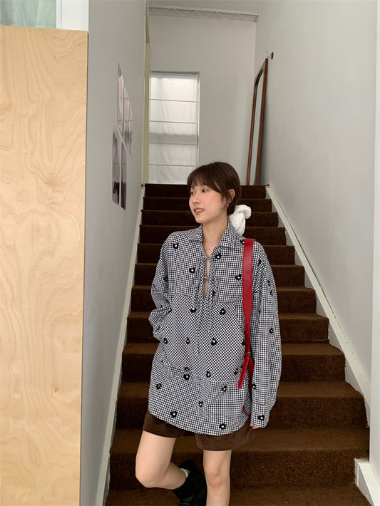【F01228】實拍韓國原單復古繡花繫帶長版襯衫250113