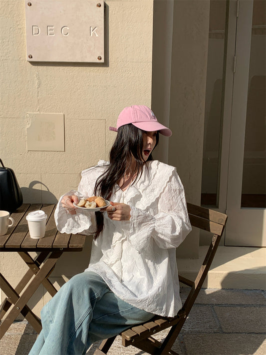 【F60134】實拍法式荷葉寬鬆長袖襯衫250212