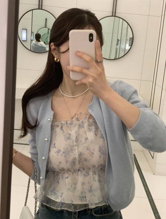 【F01216】韓國微透肌里雪紡吊帶+雪紡長袖上衣 兩件套250113