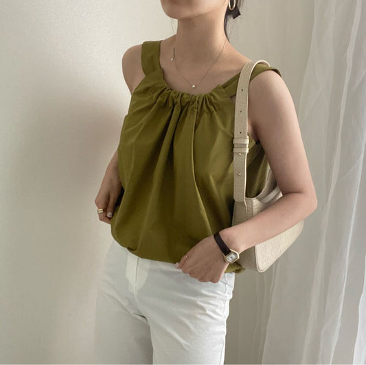 【F60405】夏季法式簡約氣質顯瘦吊帶衫250526