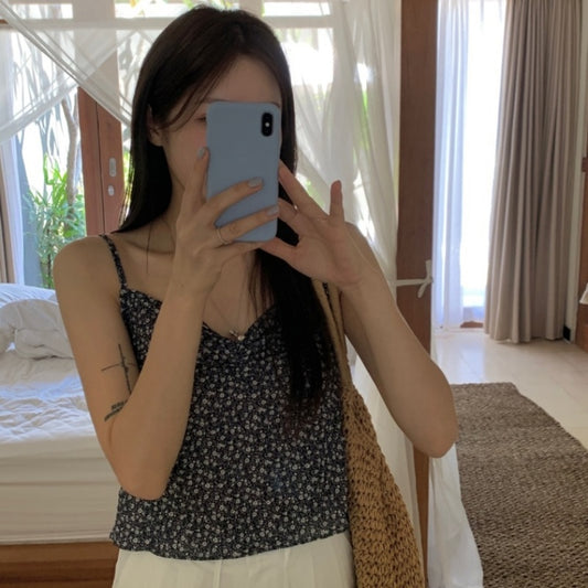 【F60414】韓國復古氣質度假小清新碎花背心250526