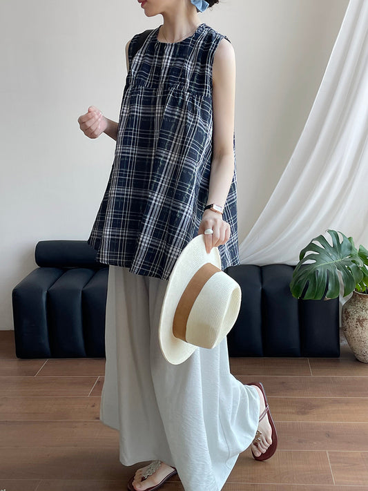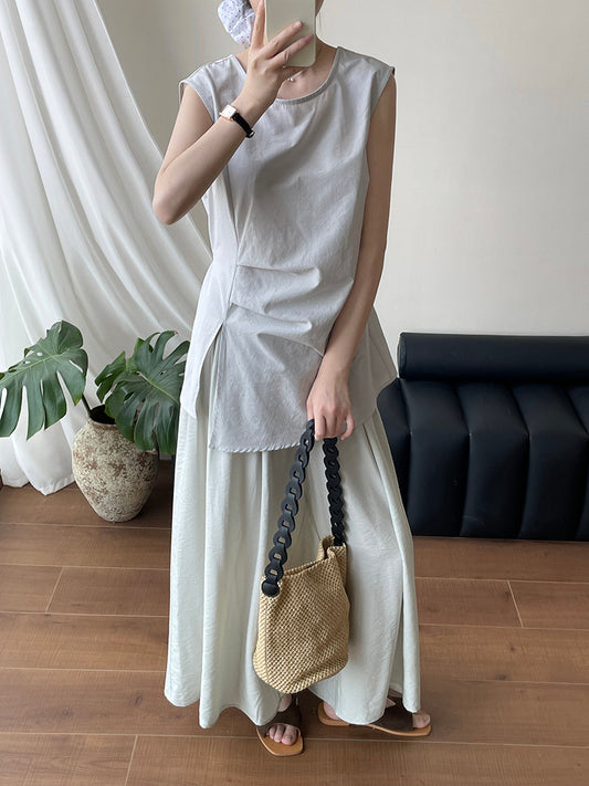 【F60422】實拍小清新百褶吊帶上衣+休閒闊腿褲250526