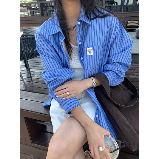 【H5281】實拍韓系夏天百搭條紋防曬襯衫250603