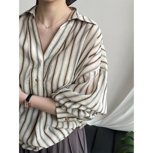 【cim2753】實拍法式棉麻條紋防曬襯衫250522