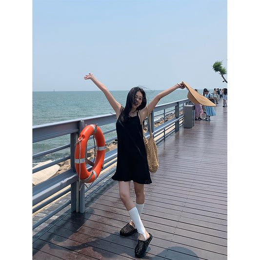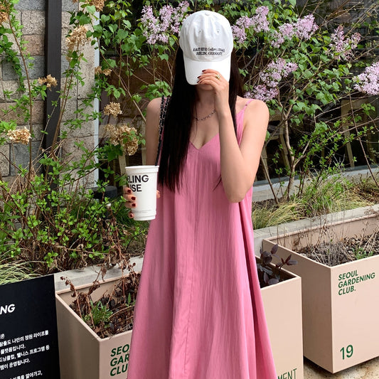 【F60474】韓系夏季法式氣質簡約慵懶度假洋裝250616