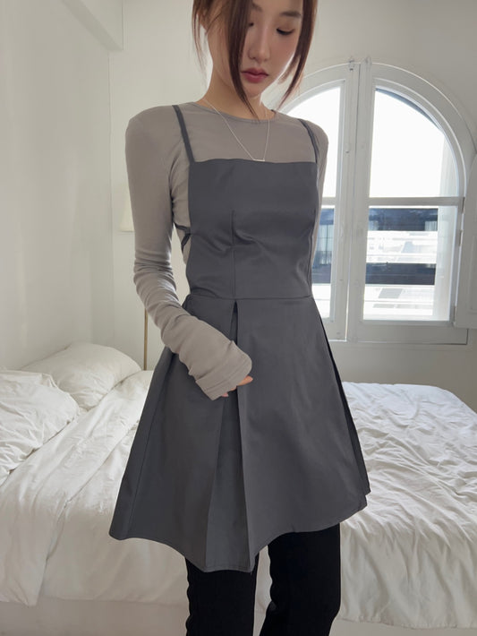 【H5311】韓系夏季方領褶邊裙襬直筒吊帶洋裝250610