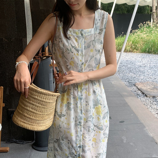 【F60429】實拍法式度假清新碎花方領復古洋裝250609