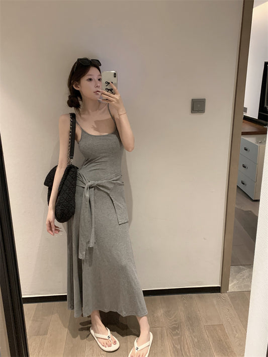 【F60473】實拍韓系復古綁帶背心A字洋裝250616