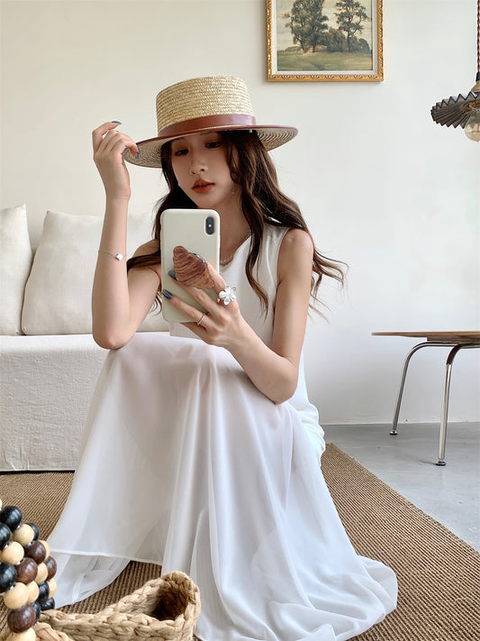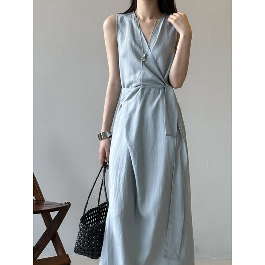 【F60363】夏季法式氣質天絲親膚顯瘦背心洋裝250512