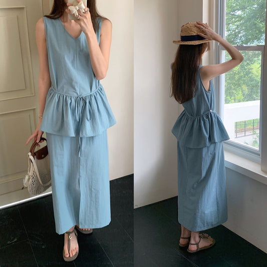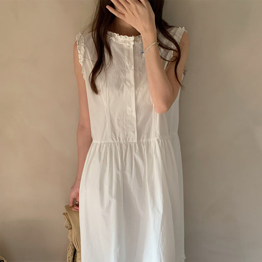【F60380】實拍夏季簡約長版開叉洋裝+甜美荷葉可拆裙擺250512