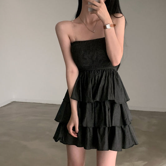 【F60401】實拍韓國復古甜美蛋糕平口洋裝250526