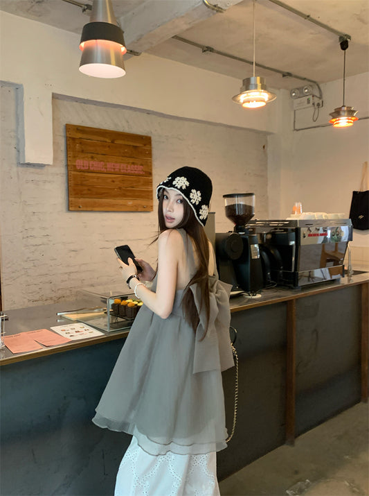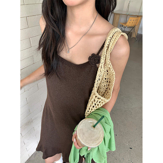 【H5265】實拍夏季甜美手工鉤花吊帶洋裝 雜飾裙襬顯瘦款250520