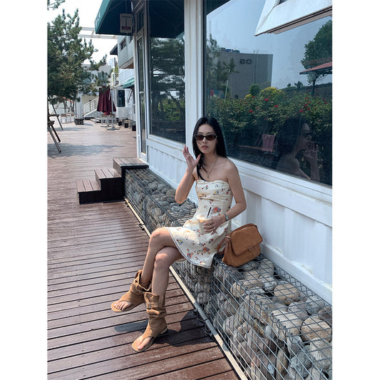 【H5297】實拍韓系高單平口碎花後打覽洋裝(有內裡,胸墊)250603