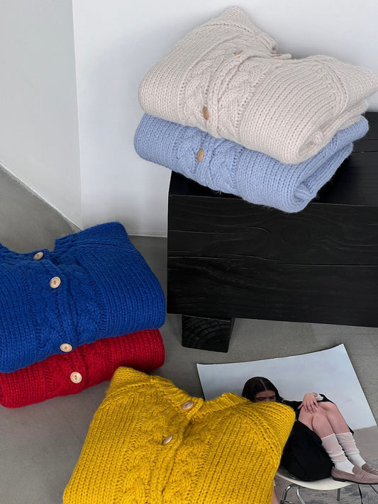 【cimzU1457】實拍韓系復古粗線泡泡袖針織開襟毛衣外套260108