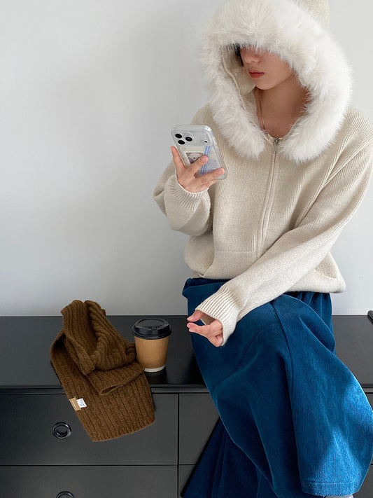 【cimz8321】實拍可拆卸毛領連帽拉鍊毛衣外套251128