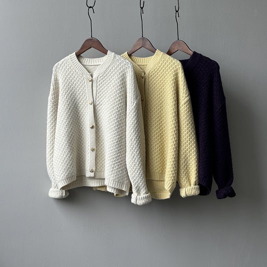 【YA15】實拍春冬寬鬆菠蘿紋愛心扣慵懶針織外套(厚)YY25早春