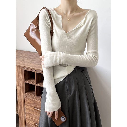 【Y20】實拍韓國早春 法式V領開口針織衫YY25早春