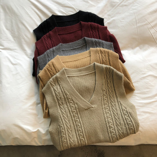 【YP6609】實拍韓國早春復古麻花針織背心YY25早春