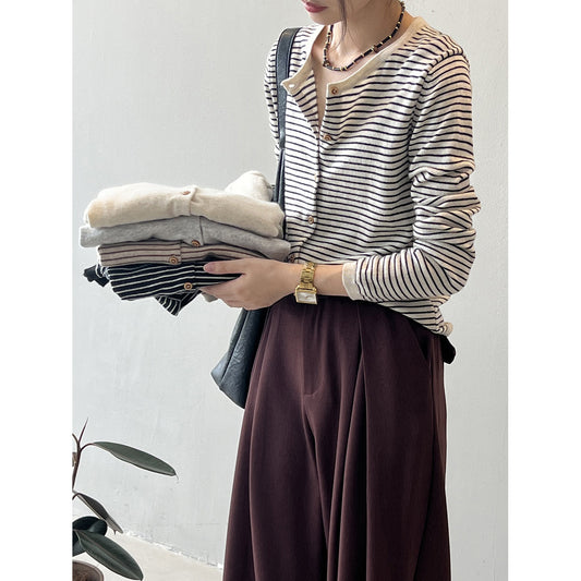 【YP168】實拍撞色條紋針織開衫(羊毛5)YY25早春