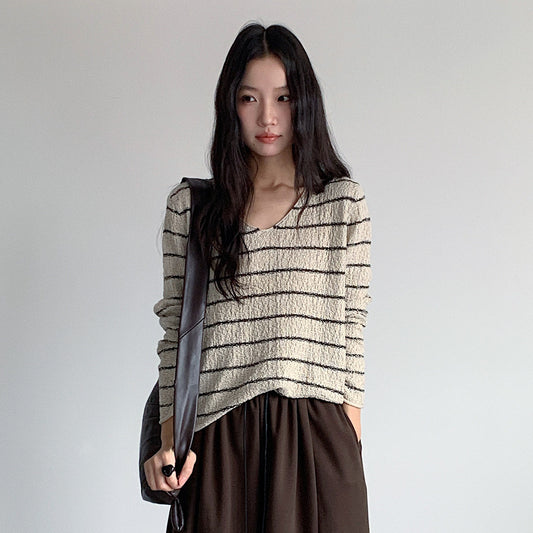 【LD11022】實拍肌理感寬鬆條紋針織衫251110